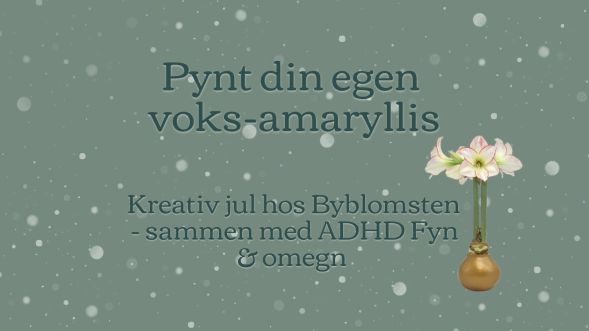 Kom i julestemning med ADHD Fyn & omegn og Byblomsten på Vesterbro Odense. Slip kreativiteten løs og pynt en voks-amaryllis